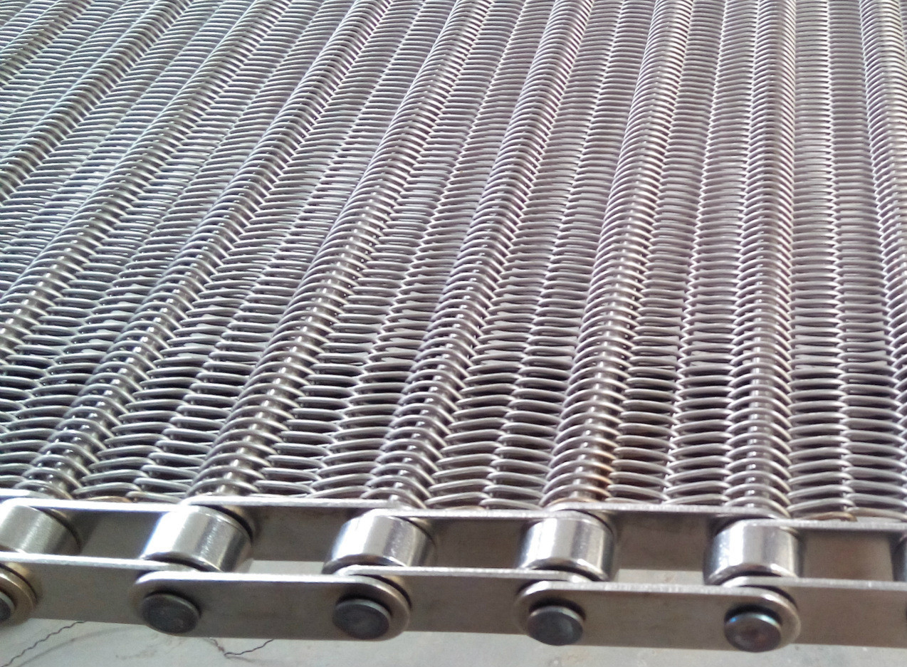 鏈條式輸送帶的工作原理:由鏈條驅動的輸送網帶一般都由鏈條帶動小軸再帶動網帶運行。 網帶都采用軋牙串條、左右網條二根串,并大小網條連接而成,大網條內穿進小軸,小軸二端穿傳入鏈條孔,從而達到鏈條驅動輸送網帶。這種鏈桿式網帶采用鏈條傳動,適用于大型和重型傳送,其運動平穩、力量大,網面相對受力小,能對輸送網面起到保護作用。