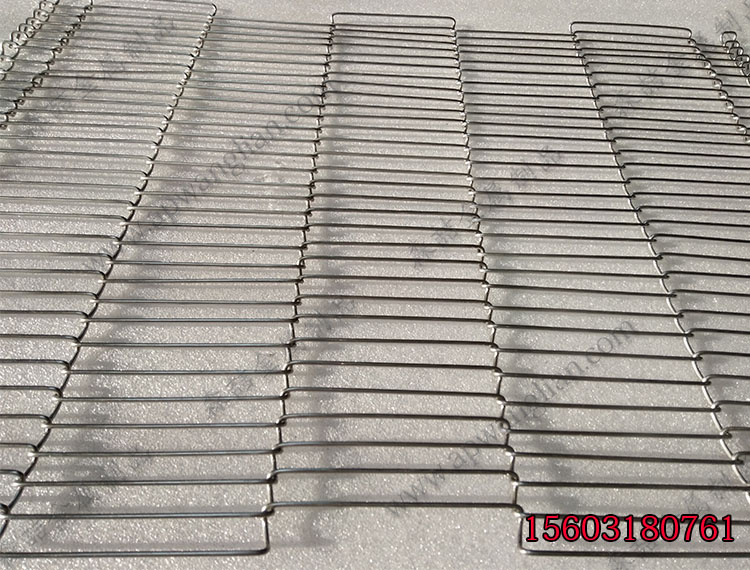 乙字輸送帶是用不銹鋼絲編織而成,具體的絲徑和網孔數據可以根據產品的重量來決定,網帶的自身重量很輕, 網孔較大,透氣性能非常強。因為其網孔較大,絲徑比較細,所以和產品接觸面積小,很好的保證了食品的衛生情況,清洗的時候非常方便,運行起來平穩。因為目前乙字網帶屬于純手工編織,生產速度比較慢,所以價格也不是很低。林經理決定使用絲徑1.2mm,節距8mm,格寬在80mm左右的數據,總寬度在1200mm,這種網帶使用在糖果的輸送當中完全沒有問題。