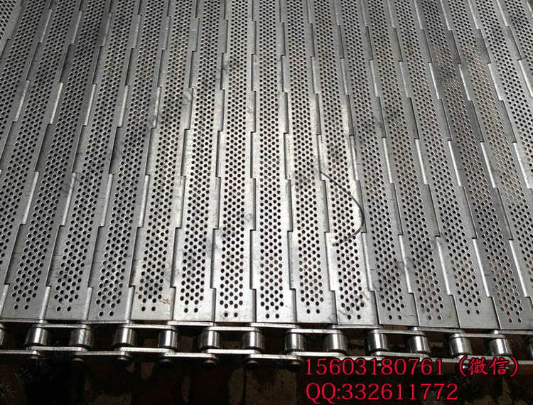 如果載重量不是太大的話我們一般給客戶推薦鏈條節距38.1mm,板厚為1.2mm,串桿6或者8mm,這樣的搭配也可以滿足100公斤/米的運輸量。這種不銹鋼輸送帶還有更大的優點就是可以在網板上沖孔來增加透氣能力和以此來減輕網帶的自重。