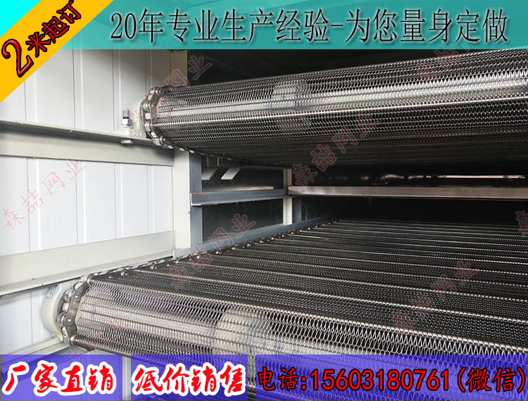 因為烘干機不銹鋼網帶均采用高質量鋼材,具有耐高溫、耐腐蝕、易清洗、抗拉強度大、承載能力強、使用壽命長等優點,其樣式多變,可以根據廣大客戶的具體需求定制尺寸數據。采用304材質的網帶耐高溫可達800度,采用310材質的話還可以應用于各種淬火爐以及退火爐等高溫爐當中。