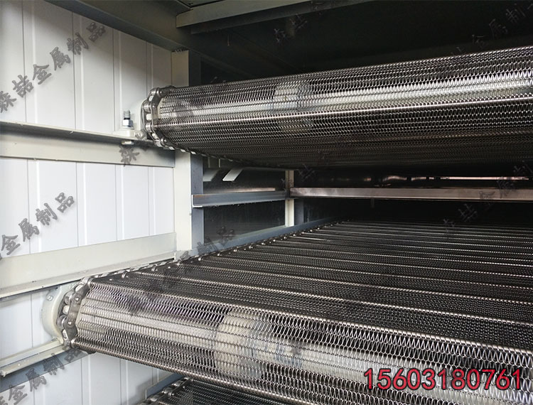鏈條輸送帶是該設(shè)備中應(yīng)用非常廣泛的一種樣式,主要應(yīng)用于各種輕重量的物料烘干輸送,根據(jù)實(shí)際需求可以定做各種數(shù)據(jù)及材質(zhì),如果是顆粒狀產(chǎn)品的話可以在輸送帶上鋪裝一層不銹鋼篩網(wǎng)以此來減小網(wǎng)孔,這種輸送帶價(jià)格比較低 ,非常適合需要通風(fēng)透氣的設(shè)備中使用。鏈板輸送帶也是烘干機(jī)當(dāng)中常用的一種,主要適用于比較重的產(chǎn)品或者體積小的產(chǎn)品,鏈板上可以通過沖孔的方式來滿足透氣的需求,這種網(wǎng)帶成本較高,網(wǎng)帶自身重量也較大,但是在抗拉強(qiáng)度和載重能力方面有著明顯的優(yōu)勢(shì)。